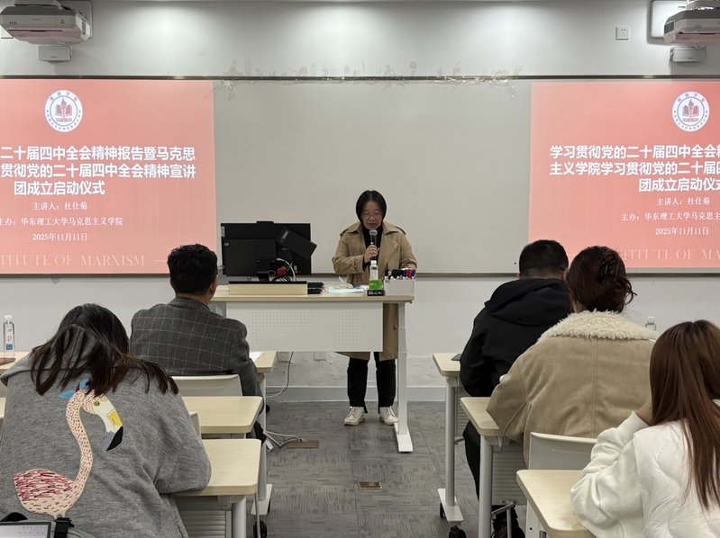 为深入学习贯彻党的二十届四中全会精神,11月11日,太阳集团tyc33455在101室举行学习贯彻党的二十届四中全会精神宣讲团成立启动仪式暨首场报告会,上海市学习贯彻党的二十届四中全会精神宣讲团成员、学院杜仕菊教授为师生作党的二十届四中全会精神专题宣讲。学院党委副书记杨倩出席,会议由学院党委委员张驰主持。